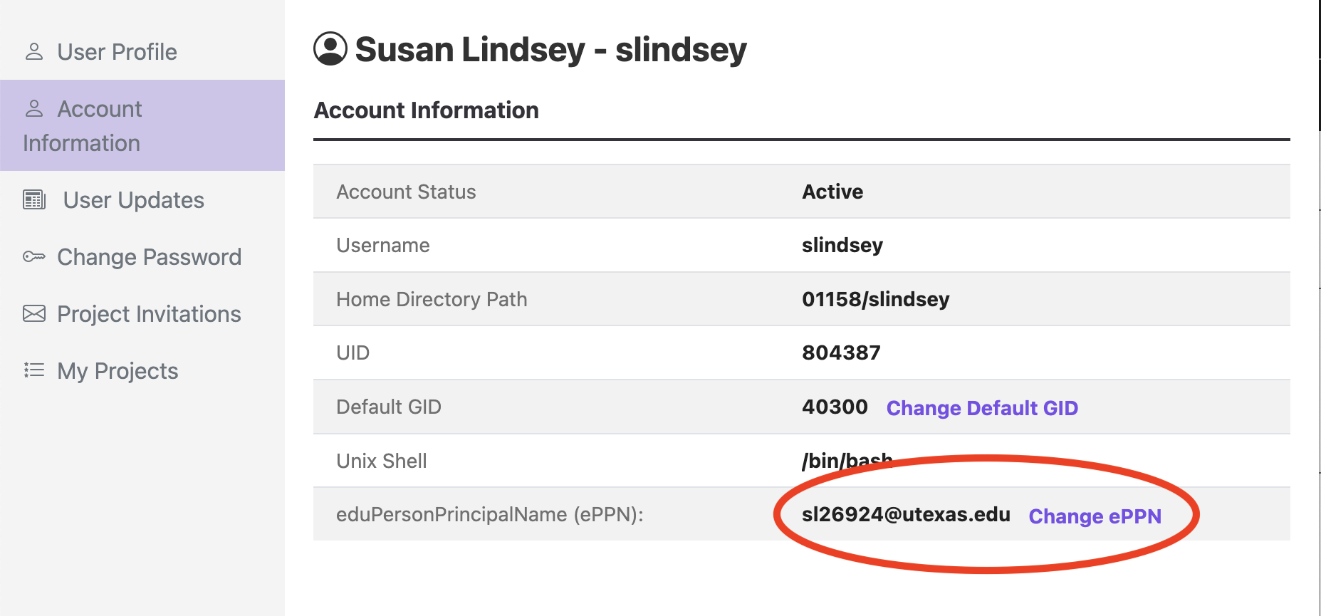 Once you update your ePPN, please allow up to 2 hours for the changes to propagate across TACC systems.